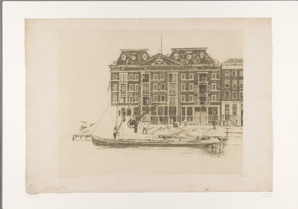 This black and white photograph by Fotobureau Holland captures Dirk van der Mark's car dealership on the Keizersgracht in Amsterdam. There’s a certain straightforwardness to the image, almost like a quick sketch, that draws me in. The reflection of the buildings and cars in the canal is where things get interesting. It’s not a perfect mirror image, but a sort of watery abstraction, a blur of light and dark that disrupts the linear precision of the architecture. It makes me think about how we construct our understanding of reality through fragments and reflections. Look at how the bare trees are cropped, and the shadow they create on the cobblestone street and how it gives this seemingly straightforward photograph a sense of depth and complexity. It's a scene that could inspire someone like Bernd and Hilla Becher, who documented industrial structures with a similar deadpan aesthetic, or even a painter like Gerhard Richter, who explores the ambiguity of photographic representation. The meaning is not fixed, but is always shifting, always open to interpretation.
