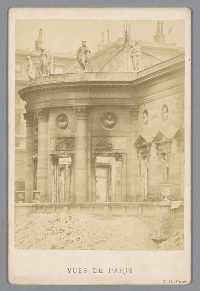 Curator: We're looking at an image called "Gezicht op de San Zaccaria in Venetië", a photographic print dating from before 1898. The cityscape is printed on paper. It really speaks to me; the print gives an incredible presence. Editor: Venice! This instantly gives me the sensation of cool marble and hushed reverence. It also appears, formally, so carefully balanced, this play of light and shadow, a somber harmony in grayscale...a real architectural protagonist on paper! Curator: Yes! It does feel deeply balanced. I am so moved by its geometry! This visual structure is powerful and evokes emotion in an incredibly thoughtful manner. Do you feel the emotional restraint? Editor: Most certainly. I find it particularly fascinating how the anonymous artist employed photography as a medium to capture a highly constructed urban environment and impose upon it even more order with this specific viewpoint, playing into Venice's complex layering of realities. Curator: I wonder if this photo was born out of love for that physical place, an ode to Venice if you will? Did the artist know its history when taking this picture, or did they care for it as much? You know, it is those small hidden stories behind a seemingly cold artwork that make them shine for me. What is the emotionality invested in the object, even before the photo, just in Venice, in the very spot that it was taken from. Editor: A beautiful conjecture! Perhaps the emotional weight is less on Venice itself but on the geometry presented: see how vertical elements punctuate the façade’s horizontality. And how each tier expresses its own kind of ornamentation? The order and the perspective, the geometric solidity; everything about this work speaks to a very carefully structured intellect and engagement. Curator: That is indeed the fascinating tension present in this artwork: the strictness of composition coexisting with a vibrant ode. One could argue this very architectural marvel came out of the intellect! I think my imagination will linger with the geometry present in the work for some time! Editor: Indeed! And for me, this architectural marvel captured with precision serves as a stark reminder of the enduring power of calculated form. Thank you, it's a gem that is indeed incredibly balanced, even in meaning!