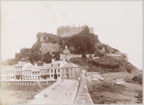 Curator: Ah, this sepia-toned scene. "Automobiel op een landweg bij Château-Rocher in Saint-Rémy-de-Blot," captured in 1903 by Delizy. A charming snapshot, wouldn't you say? Editor: It really is. It’s more than a photograph, it’s like stepping into a hazy memory. There's such a strong sense of nostalgia. The car looks incredibly modern parked alongside that crumbling château in the distance. What draws your eye most when you look at it? Curator: It's the juxtaposition, isn't it? That delightful push and pull between progress and the past. This photograph really captures the era, a time when the modern world, symbolized by that automobile – was just beginning to assert itself upon the ancient landscape. It’s like history itself is pondering its next move. Do you feel that tension? Editor: Absolutely! The castle ruins sitting high on the hill, juxtaposed with the automobile. The people near the car are just *there* while the ruined castle gives it that striking scale. Curator: Precisely. Now, the car, quite obviously, speaks to advancement. The way it interrupts the seemingly hand-tinted, painterly quality makes the car stand out all the more. Delizy isn't just showing us a scene, it seems Delizy wants to show what it *feels* like to be on the brink of immense change. Editor: I hadn't considered the idea of *feeling* change. It seems that photography could capture emotion and not only the moment in front of the camera. I came into this conversation focused on contrasting imagery, but now it is evident that Delizy has composed more than only visual opposites, he included emotional ideas. Curator: Yes! Delizy wasn't merely documenting; the artist seems to weave us right into a turning point in time itself, quite intentionally! Editor: That's wonderful; it's given me a totally new perspective! I will reflect further. Thanks!