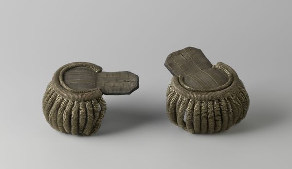 Editor: So, here we have a photograph of a pair of epaulettes that belonged to Otto Willem Falck, sometime between 1800 and 1830. They look incredibly formal, almost theatrical. The detail is really striking. What stands out to you most when you look at them? Curator: It's fascinating how an object so clearly tied to military rank and power, something intensely political, can now seem like a relic from a costume drama. The epaulettes are presented here divorced from their context, almost like still-life objects. Editor: Right. Does the way they're presented in a photograph affect our perception of their original function? Curator: Absolutely. Photography here removes them from the active sphere of military display. They are defanged, so to speak. Instead of conveying authority, the image invites contemplation of vanished social structures. Consider how this image would function in, say, a museum display versus a propaganda poster during Falck's time. Very different! Editor: I see what you mean! How the museum environment impacts our reading of objects as historical symbols, rather than just aesthetic objects. Curator: Precisely. We're less likely to view Falck himself, more the societal conventions he embodies and upheld. And that's a really fascinating shift! Editor: This definitely makes me think differently about how seemingly simple photographs of objects can hold so much social and political weight! Curator: Indeed. It forces us to examine the evolving roles these artifacts play, not just their initial intended purpose.