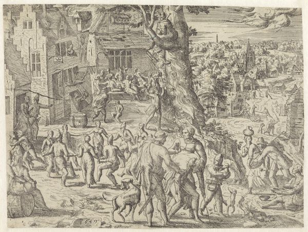 Dirck Volckertsz Coornhert created this print, “Saul Returns to His Father,” sometime in the 16th century. Coornhert was a Dutch printmaker, and he used his art to express his personal philosophy and humanistic views. Here, we see a story of reconciliation depicted in a detailed landscape. The classical-style tomb suggests a contemplation on mortality and the passage of time. This biblical scene can be interpreted through the lens of familial duty and forgiveness. What does it mean to return, not just physically, but emotionally and spiritually, to one's origins? In the historical context of the Reformation and Counter-Reformation, Coornhert's work embodies a quest for harmony and understanding amid religious and social upheaval. The artist seems to ask us to look inward and consider the values that shape our identities and communities. His art serves as a mirror reflecting the complexities of human relationships.
