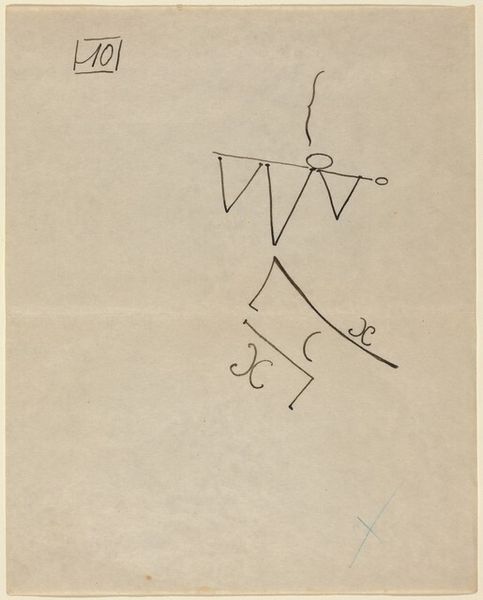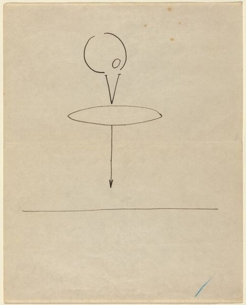 Editor: So, this is *Untitled* from Large Illumination Drawings, made by Simone Forti in 1972. It’s a pencil drawing on paper, and… well, at first glance, it feels incredibly sparse. Almost like a diagram of something, but I'm not sure what. What do you make of it? Curator: That sparseness is key, isn't it? Forti was working within a minimalist context, deeply influenced by the sociopolitical landscape of the '70s. Minimalism, in its reaction against Abstract Expressionism, sought to strip away the emotional excess. Consider how institutions and galleries, traditionally gatekeepers of artistic value, reacted to this dematerialization of art. What is 'art' when it's reduced to almost nothing? Editor: That's a great point. So, this isn't just about aesthetics, but also about questioning what gets shown, and why? The gallery decides if Forti is shown. Curator: Precisely. The political implications are intertwined with its visual language. Also, is it a landscape, perhaps? What elements hint at a possible narrative, and how might that engage with ideas circulating in counter-cultural movements at the time? Editor: I can see that, I mean it does look like water or something like a flat surface with a balloon above it, perhaps the balloon is dipping into the water. Curator: The simplicity invites projections, and that’s intentional. It challenges the conventional museum experience by inviting the public to participate in constructing meaning, thereby questioning institutional authority. How do you feel it challenges it? Editor: Because people will see the simplicity and believe they could've done that, which opens it to discussion. Thanks that put this into an exciting socio-political perspective for me, viewing art like this can provide another layer of thought while visiting galleries and museum. Curator: Exactly. Reflecting on that simplicity and questioning how our environment—including institutions—shapes our understanding… that's the heart of the matter.