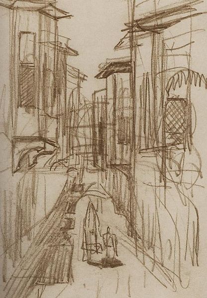 Othon Friesz made this painting, ‘Gamle huse i Falaise, Normandiet’, with oil on paper, and it's a real lesson in how to make a lot out of a little. It’s a monochrome world, varying shades of grey working hard to show us this street in Normandy. I love how Friesz handled the paint here – not fussing too much, letting the strokes be visible, like he's inviting us into his process. Look closely at the rooftops, how the brush dances, creating texture and form with such economy. It's like he's saying, "Here's the essence, you fill in the rest." There’s a certain humility in the way Friesz approaches his subject, he’s not trying to impress, just trying to see. Thinking about other painters, Friesz has shades of someone like Morandi, in the way he finds poetry in the everyday, transforming simple subjects into something quietly profound. For me, this piece is a reminder that art isn't about perfection, it's about the dialogue, the questions, and the joy of seeing.
