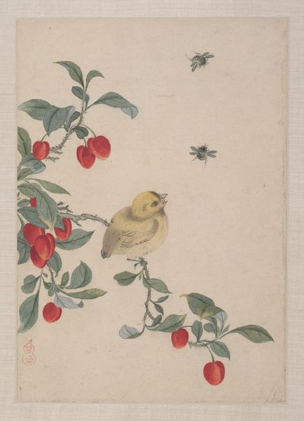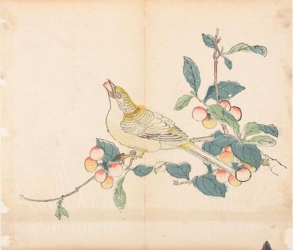 Kōno Bairei’s ‘Zangvogel op bloeiende tak’—a bird on a blossoming branch—is a delicate print. Observe how the composition emphasizes the interplay between line and color, creating a sense of balance and harmony. The composition is structured around the diagonal branch which bisects the picture plane. Note how the yellow blossoms, strategically placed along the branch, create a rhythm that guides the viewer’s eye. The bird, with its muted grey and pink plumage, is poised delicately, creating a focal point that draws the viewer in. What interests me about the image is how Bairei uses the contrast between the bird and the flowers, between the organic forms of nature and the structured composition of the image. This contrast invites us to reflect on the relationship between art and nature. What do you make of the way the organic and geometric forms play off each other?