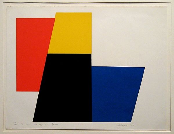 Stephen Antonakos made Fragments of a Square #16 using colored pencils on paper. Not exactly your typical sculptural material. The work's visual impact resides in its sharp lines and clean geometric forms. But what happens when we consider the ‘how’ of the work alongside the ‘what’? The work shows off a handmade feel. The colored pencil lines have a softness, and a tactile quality, that’s really different from, say, a silkscreen print. In its making, Antonakos is slowing things down, literally drawing attention to the activity of drawing itself. The colored pencil, so familiar from childhood, is here used in an utterly precise way. Perhaps the reference to rudimentary processes is a way of implying that even the most basic means of production can be used to create a sophisticated end. The finished artwork challenges our assumptions about what counts as skillful work, inviting us to see value in unexpected places.