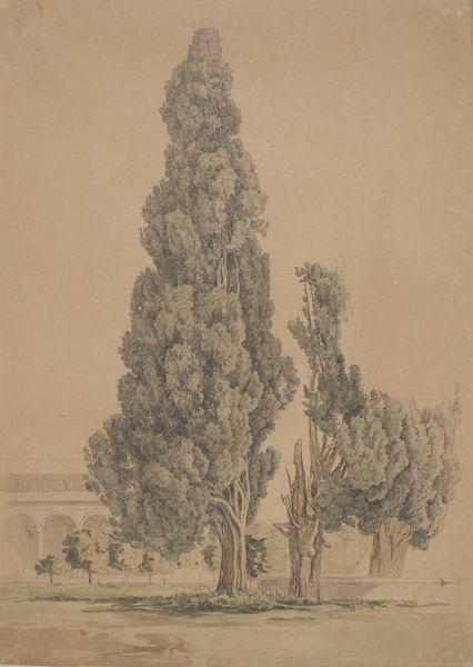 Carl Morgenstern painted these cypresses in the park of the Villa d'Este with oil on paper. This Villa, located in Tivoli near Rome, provides an interesting case study in the relationship between art, power, and social change. The Villa d'Este was built in the 16th century for Cardinal Ippolito d'Este, and it’s celebrated for its elaborate gardens and fountains. By the 19th century, when Morgenstern painted this, the gardens had become a popular destination for artists and tourists alike, symbolizing the allure of Italy's classical past. Morgenstern's choice to focus on the cypresses, with their classical associations of death and the afterlife, may reflect a broader cultural interest in ruins and the passage of time. What would a visit to the archives of institutions of art and tourism, teach us about the way this location was framed for public consumption?