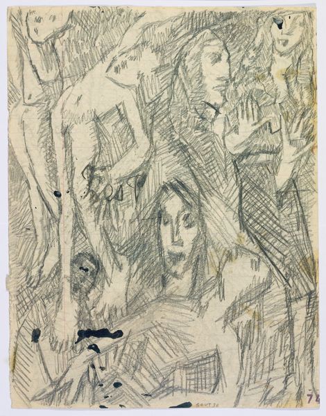 Editor: This is Marc Chagall's "The Tale of the Ebony Horse," created around 1945-46, using ink and watercolor. There's almost a dreamlike quality to it, the figures seem to float. The narrative is unclear to me. How do you interpret this work, particularly considering the time it was made? Curator: It's crucial to consider the socio-political context of the mid-1940s. Chagall, a Jewish artist, was living in exile during World War II. This work, illustrating a tale from "One Thousand and One Nights", can be seen as a form of escapism, but also a reflection on displacement and cultural identity. Notice how the figures are not grounded, evoking a sense of uprootedness. Editor: That's interesting, I hadn’t thought about the wartime context so directly impacting the sense of 'floating'. What about the Ebony Horse itself? Curator: The Ebony Horse in the tale is a symbol of technological marvel, capable of transporting its rider across vast distances. During wartime, technology becomes associated with both destruction and liberation. Chagall uses this mythical figure to question the role of technology and its impact on society and the individual. What is the public role of a folktale, do you think, at this moment? Editor: I guess, folktales and storytelling keep traditions and historical imagination alive, connecting to a rich cultural past while facing the unknown future. I see your point now. It’s like a preservation of cultural memory, and a hope for the future even amidst terrible events. Curator: Exactly. Chagall uses his art to not just illustrate, but to actively engage with these complex historical forces. The lightness is also an access point for many people; his images made sure culture had a public role. Editor: I definitely see this work differently now. The context gives it a depth I hadn’t initially recognized. It is more than an illustration; it is also history lesson. Curator: It also illuminates how art can serve as a repository for collective memory and a form of subtle social commentary.
