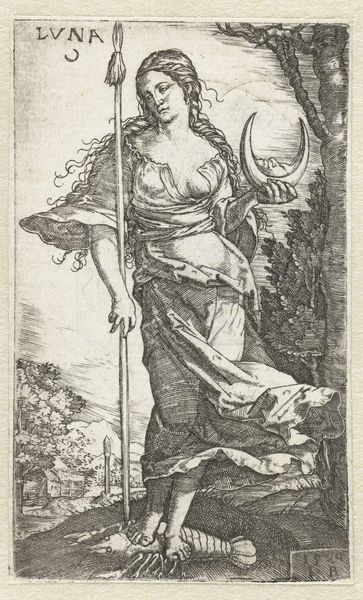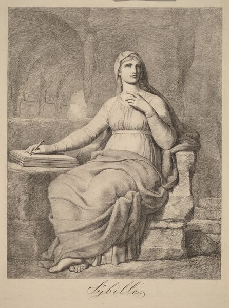 Curator: Before us, we have Friedrich von Amerling's 1835 work, "Hebe," an intriguing exploration rendered in watercolor. Editor: There's a curious blend of boldness and delicacy. I am immediately drawn to the contrast between the vibrancy of the figure and the dreamlike softness of the background. The eagle especially is commanding, isn’t it? Curator: Yes, its prominence cannot be ignored. Amerling deftly merges Romanticism and academic styles here to embody the essence of Hebe, the Greek goddess of youth. Her figure carries forward the traditional association between femininity and vitality. Editor: Right, and Amerling's choice of a young woman looking upward, almost pleading, creates a compelling dynamic. In the mythic sense, she's perpetually youthful, tasked with serving nectar of immortality—so it strikes me how she is forever stuck in a servile position despite her godhood, reinforcing ancient patriarchal structures. Curator: The symbol of the cup emphasizes her divine role. Its round shape echoes female symbolism dating back millennia. By including the eagle—a familiar attribute of Zeus—Amerling reinforces Hebe’s place in the Olympian hierarchy. Consider the colors as well: the cool blues behind contrast so poignantly with her bright ochre dress and the deep crimson cloak, reflecting Romantic sensibilities. Editor: I see a tension there. Although formally arresting and beautifully rendered, works like these can flatten mythology to the point of being symbolic ornamentation. Who did these idealized depictions actually serve? By reinforcing the notion that this figure must obey an external mandate—in this case to serve as nectar bearer of Olympus, reinforcing power structures. It also conveniently hides the brutal politics often interwoven into even seemingly benign art historical moments. Curator: And in today's contexts, viewing Amerling’s piece as a record of cultural memory lets us reconsider historical biases inherent to inherited cultural symbolism. Even so, seeing how Amerling interpreted and translated these enduring characters and symbolic language onto a new surface can offer fresh entry points into art and history. Editor: Agreed. It prompts crucial questioning, pushing us to deconstruct, reimagine, and confront who benefits from visual representation. What a fascinating dance this artwork embodies.