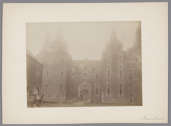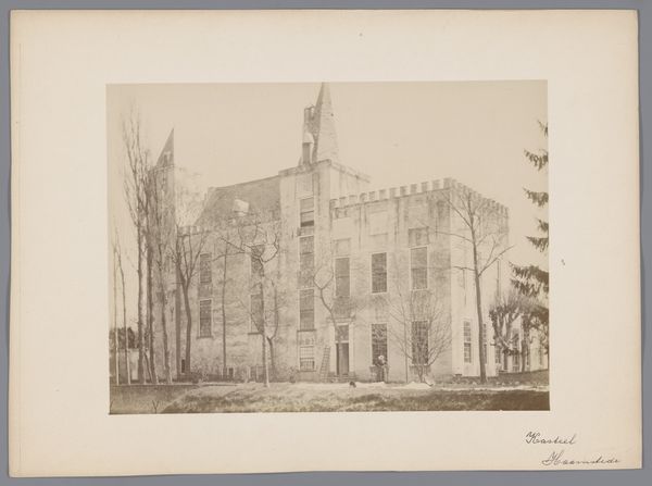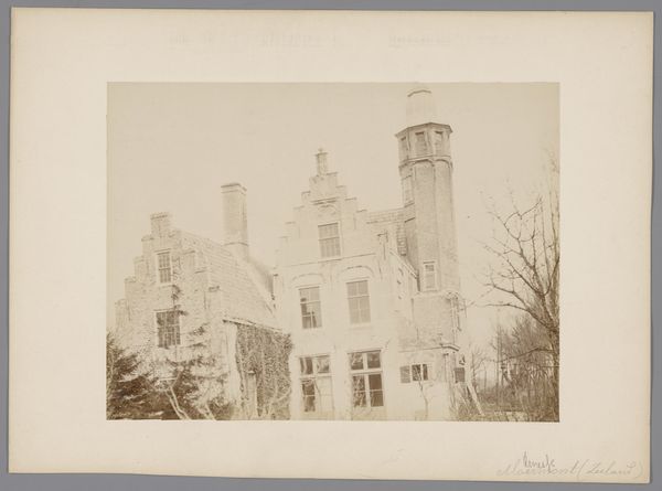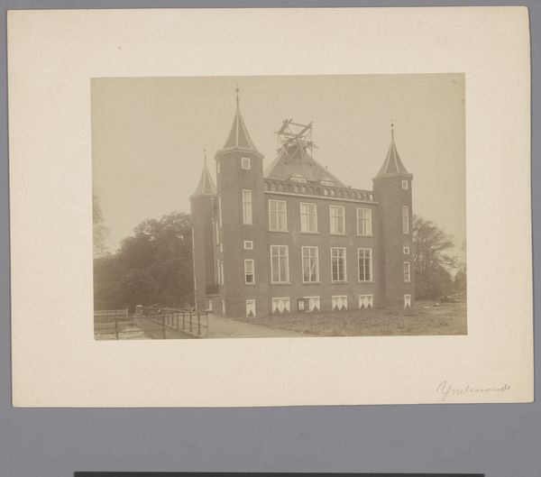 This photograph, “Gezicht op Kasteel IJsselmonde,” of unknown date, captures a castle with a muted palette. The symmetrical composition, dominated by vertical lines of the towers and columns, is set against a soft background, evoking a formal, almost austere presence. The photograph presents the castle's facade in a straightforward manner. The castle is balanced yet there are boarded-up windows which introduce a semiotic complexity that destabilizes the perception. The contrast between the regularity of the structure and the disorder from the boards suggests a deeper exploration of absence and presence. The visual architecture reflects a cultural dialogue between preservation and decay. The photograph captures a moment frozen in time, inviting us to consider not only the structure but also the layers of meaning it carries.