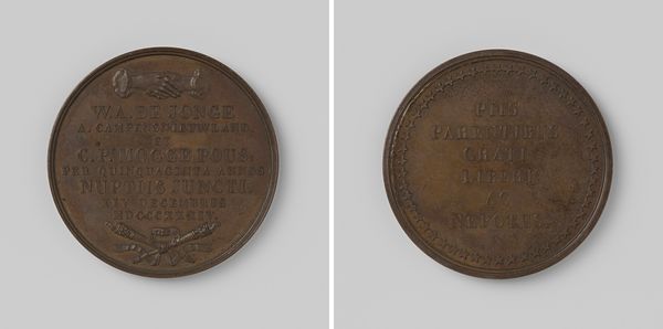 This bronze medal was made by David van der Kellen to celebrate the bicentennial of Amsterdam’s playhouse. Notice the weight and sheen of the medal - bronze is ideal for this kind of commemorative object, as it is durable, and can capture fine detail in the die-stamping process. This technique involves hammering a metal die into the bronze. It's a process that dates back to ancient times, requiring skilled hands and precise machinery to create a lasting and reproducible image. The medal's design features floral motifs and inscriptions, typical of commemorative medals of the time. What makes this object interesting is that the act of minting medals has always been adjacent to both artistic expression and industrial production. The artistry lies in the design and the craft of die-making, while the industrial aspect is in the repetitive stamping process, an early form of mass production. The medal is not just a celebration of the playhouse, but also a testament to the broader social and economic forces at play in 19th-century Amsterdam. It’s a reminder that even seemingly simple objects can reveal complex stories about labor, art, and the making of history.