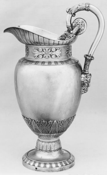 Curator: This intricate silver bell, dating back to 1769-1770, was crafted by François Delapierre and now resides here at The Met. What's your first impression? Editor: It strikes me as rather severe, almost austere despite the baroque detailing. The monochrome palette emphasizes the form over any kind of... warmth. Curator: The lack of color does underscore its function. Bells are, after all, about summoning, calling attention, not necessarily comforting. Its ornamentation, those stylized floral and foliate motifs, feels formal. What sort of cultural echoes do you pick up from these designs? Editor: The repetition creates a sense of order, societal norms and expectations really ringing out. The shape, coupled with those baroque flourishes, evokes aristocratic power and privilege during the late 18th century. The message is less about piety and more about earthly authority and hierarchy, wouldn't you agree? Curator: Yes, the form itself has a long lineage. Bell shapes are deeply embedded in human experience across diverse religions and communities. It’s the specific design elements—the engraved patterns, the finial on top—that speaks volumes here. These refined details reveal much about the social circles it likely moved in. Think of the visual language conveying status. Editor: Precisely. While bells traditionally signify calling the public to action – in this case I see its main impact through socio-political angles. This kind of craftsmanship would certainly be confined to a very specific social status – its message being all about a select social segment that had something to declare. It would be great to analyze from an archeological lens: what sort of calling-to-action signals did people value? Curator: Intriguing idea. It does make you contemplate what it might have been used for. To summon servants, to announce dinner, or something more ceremonial? I appreciate that its message could be one of authority through a high-society perspective and how deeply enmeshed sound itself is with human belief. Editor: A potent reminder of the way artistry becomes intricately tied to societal norms, political statement or personal aspiration... Thank you for a revealing tour, through our audio analysis.