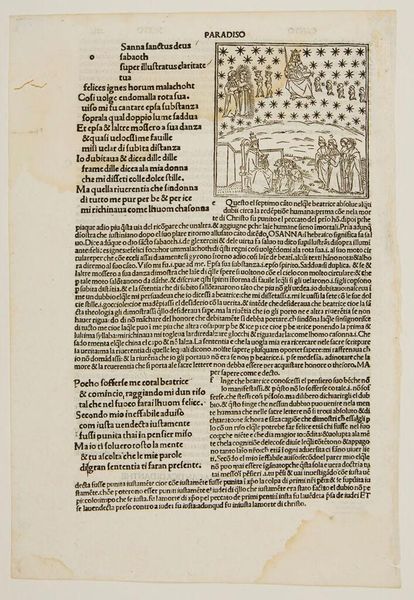Editor: Here we have an anonymous illustration, "Canto IX. The Third Sphere: Venus / The Amorous; Cunizza; Folquet; Rahab; Denunciation of the Papal Court," undated, found at the Harvard Art Museums. The scratchy lines and fantastical cityscape give it a dreamlike quality, don't you think? What do you see in this piece? Curator: I agree; there's a definite otherworldly quality. The scene depicts figures ascending towards a large star, likely Venus. Consider how the artist uses the architecture, a somewhat crude rendering of a walled city, to create a sense of depth and perspective, guiding the viewer's eye upwards. It's as if the earthly and divine realms are interwoven. Editor: So, the city is Earth, and the star is… Heaven? Curator: Perhaps. Or, at least, a symbolic representation of higher ideals. The figures could be souls progressing on their spiritual journey. What do you make of the text surrounding the image? Editor: It frames the image and provides meaning for interpreting the illustration. It makes me curious about the relationship between image and text.