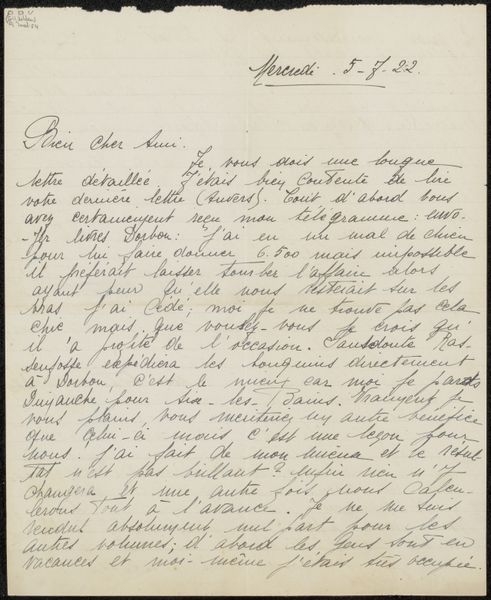 This is a letter from 1917, written in Paris, by Rose Imel. What strikes me right away is the handwriting itself. It’s so fluid and alive, full of quirks and idiosyncrasies. The ink meanders across the page like a restless line in a Cy Twombly painting. Each word is a little gesture, a dance of pressure and release. You can feel the artist's hand, the way they leaned into certain strokes and pulled back from others. Look at the loops on the ‘p’ and ‘j’ , how they swell and taper, creating a rhythm that's almost musical. This reminds me of how we often see art as a window into someone else’s mind and experience. Each letter, each word, is an act of translation, an attempt to bridge the gap between one consciousness and another. It’s never perfect, never complete, but that’s what makes it so compelling. Like all art, it’s about the conversation, not the conclusion.