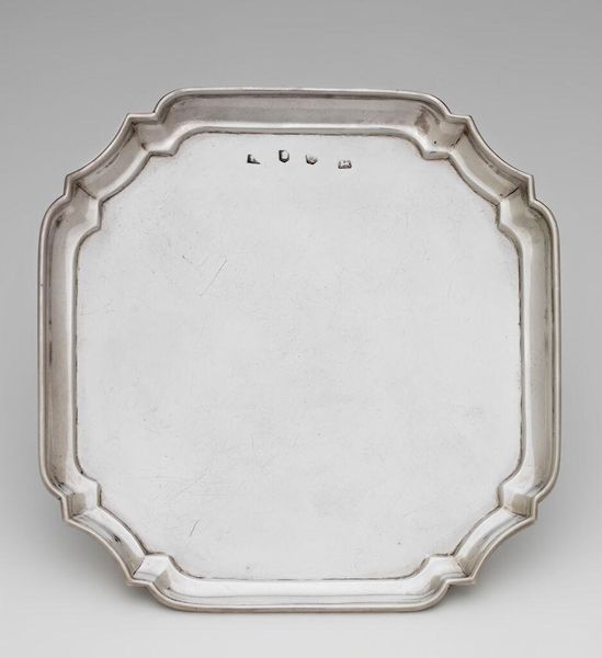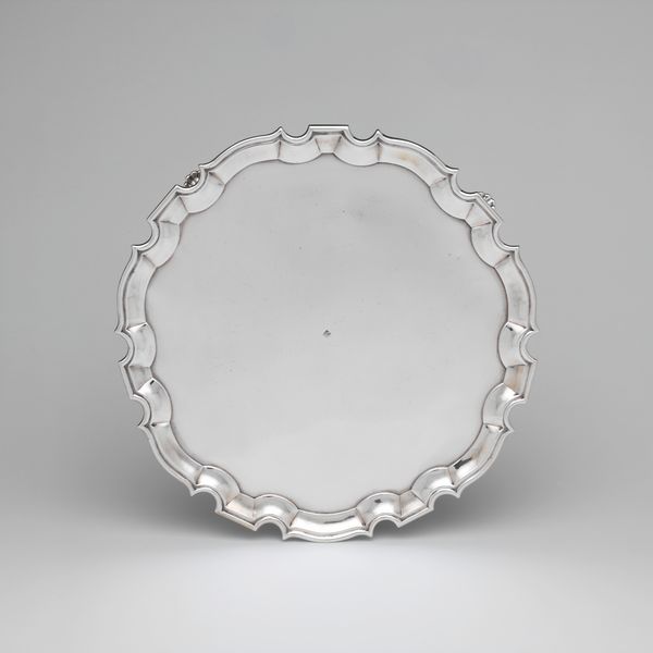 Curator: This is a salver crafted by John Carter, who lived from 1748 to 1817. Editor: It’s so reflective! The piece feels almost like a blank canvas ready to be filled with objects, reflecting societal values of its time. Curator: These salvers were important markers of status, used to elegantly present calling cards or refreshments. We can look at the socio-political context of the Georgian era, and consider the power dynamics inherent in such displays of wealth. Editor: The scalloped edge and the subtle feet also speak to a kind of restrained elegance that was typical of the period. Who had access to such luxury items really tells a story of class and privilege. Curator: Precisely. And understanding who commissioned and used this salver allows us to interpret the politics of imagery inherent in its display. Editor: It really offers a window into the lives and social structures of the past, doesn't it? Curator: Indeed, there’s so much to unpack when we consider how objects shape and reflect our social realities.