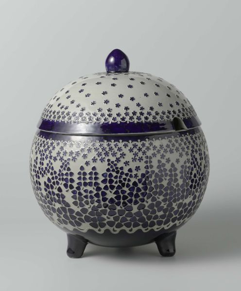 This lidded jar, called Northern Ice Flow, was made by Carol and Richard Selfridge, though the exact date is unknown. It’s a cool, calm piece, inviting you to slow down and look closely at its surface. The outside of the jar is covered in a network of tiny, irregular shapes. It's as if the glaze cracked as it cooled, leaving a web of white lines against a blue background. The texture looks raised and bumpy, almost like the skin of a reptile. I keep thinking about how process is key here, how the artists would have little control over the final appearance. There must have been a lot of trust involved! There’s a real conversation happening between control and chance, between intention and accident. It reminds me a little of Lucio Fontana and his slashed canvases, where the act of breaking open the surface reveals something new and unexpected. Art is an ongoing dialogue between artists and ideas, isn’t it?