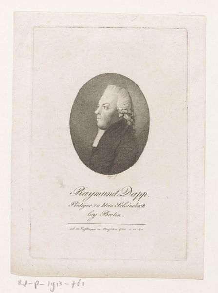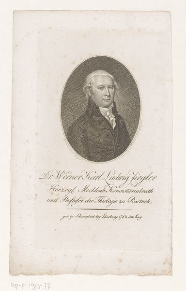 Curator: Up next, we have an engraving from 1802: "Portret van Georg Joseph Beer" by Johann Daniel (II) Laurenz. It's a beautifully rendered neoclassical portrait. Editor: Intrigued by the sternness. Something about the set jaw, framed by that meticulously etched oval... it's imposing, isn’t it? Very 'esteemed gentleman of science' vibes. Curator: Exactly! Beer was a prominent ophthalmologist. This portrait was probably commissioned to project that image of learned authority. It captures him in that perfect intersection between realism and idealization common to Neoclassicism. Editor: Realism and Idealization often come in contrast. Think about what that idealized vision excluded or muted. It doesn't invite intimacy. There's no playfulness or vulnerability visible in the engraving. Who are portraits really for, anyway? The sitter or the imagined posterity? Curator: Ooh, spicy take! The tight control that defines this artwork, every carefully placed line… perhaps you’re right to feel a certain chill in the air, and portraits might very well become performative gestures to fit the expectations of the day. It definitely fits within a power structure. But isn’t there also something profoundly human in the desire to be remembered favorably? Editor: Perhaps… and to resist being confined to a single interpretation, too. Looking back, I'm left thinking about how we continually negotiate those complex visual dialogues around identity and power. This etching offers not a definitive statement, but rather an ongoing and contested territory for expression. Curator: Agreed. And ultimately, maybe it is the contradictions, the questions an artwork provokes, that give it such lasting power.
