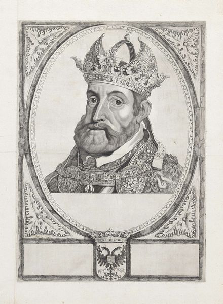 Curator: This engraving, dating from somewhere between 1549 and 1573, presents us with a portrait of Pope Nicholas V. The artist is, alas, anonymous. Editor: Immediately I’m struck by how heavy everything feels. The elaborate papal tiara, the ornate garments – it all seems to weigh him down, you know? Like he’s carrying the weight of the world, or at least, the Catholic Church, on his shoulders. Curator: It's fascinating to consider the role such portraits played in constructing papal authority. The meticulous detail in the engraving—the rendering of fabric, the intricate designs—all served to project an image of power and erudition. The figure of Nicholas V, who reigned in the mid-15th century, is interesting; his pontificate marks the beginning of the Roman Renaissance. The creation of this image at a much later date invites speculation, however. Editor: It’s also striking how somber he looks. The gaze is averted, there’s a kind of world-weariness etched into his features. You can’t help but wonder what went on in his papacy. Curator: Indeed. Viewing this image, one might consider how the papacy positioned itself amidst social and political upheaval and the expansion of European powers. Editor: And look at the line work, it’s incredible! It’s almost as if the artist is trying to capture not just his likeness, but his essence through all of this meticulous detailing. Curator: Engravings like these were crucial in disseminating images and solidifying cultural narratives around leadership figures, becoming powerful political tools. Editor: It leaves you contemplating the burden of leadership, of legacy, and what it truly means to embody a position of such magnitude. There is more to this character that one can extract, no? Curator: It is a great depiction of the paradox between religious figures and those burdened with earthly duties and worldly power.