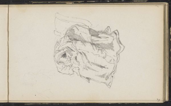 Editor: This is Paul Cézanne's "Study of an Ecorché and a Man's Face in Profile," a pencil drawing. It feels like a glimpse into Cézanne's process. What do you see in this sketch? Curator: It’s a compelling look at Cézanne grappling with representation. The écorché, a figure stripped of skin to reveal muscles, reflects a history of male artistic anatomical study, often used to reinforce power structures. Editor: Power structures? Curator: Yes, control over the body, knowledge as power. Cézanne's act of sketching it, however, challenges its authority, questioning the male gaze while simultaneously engaging with it. What do you make of that? Editor: It's interesting to think of this sketch as both participating in and questioning those traditions. Thanks! Curator: Indeed. It gives us insight into the complex dialogue between art, history, and representation.