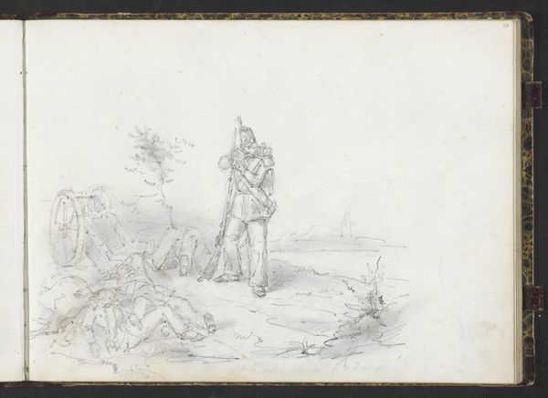 Lambertus Lingeman created this drawing, "Hunting party clashes with a group of rabbits", using graphite on paper. This is a traditional, unassuming medium, but the image conveys so much about how class distinctions play out in everyday life. Lingeman masterfully uses graphite to create a dynamic scene of chaos and movement. The soft, granular texture of the graphite lends itself well to depicting the flurry of fur and the frenzied energy of the hunt. We can almost feel the weight of the rifles in the hunters’ hands, and sense the panic of the rabbits as they scatter. The swift strokes evoke the traditions of sketching from life, but the scene also carries the strong scent of the aristocratic privilege of the hunt. The value of this work lies not just in its aesthetic qualities but in the way Lingeman uses his materials and skill to invite reflection on the relationship between humans, animals, and the environment, as well as class structures. It challenges us to consider the social and ethical implications embedded within seemingly simple scenes of everyday life.