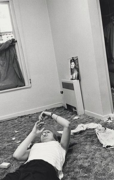 Jim Goldberg made this photograph, Pinkey and Tabitha, Room 28, Hotel St. Paul, sometime in the late 20th century. The high contrast of the monochrome print shows us every tonal shift and subtle change in texture, like the surface of a drawing. The image is arresting: two figures lounge on a bed in a bare room, one with a cigarette, the other staring off into the middle distance. I can't help but notice the arm that's held aloft, each cut a mark or brushstroke across the skin. The more I look, the more this small gesture seems to contain the whole image. Those marks feel so loaded. There is a raw quality to Goldberg’s work, reminiscent of Diane Arbus, though Goldberg is more overtly political. Like Nan Goldin, he captures the stark realities of human experience with unflinching honesty. This piece rejects easy answers, it embraces the unresolved tensions and messy realities of life, urging us to look closer.