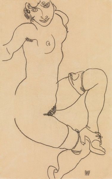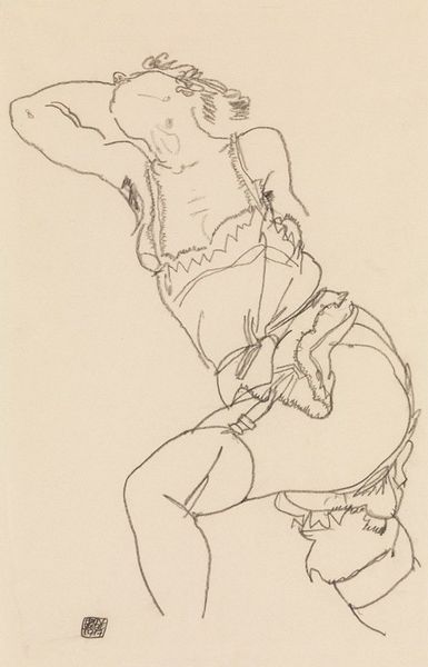 Egon Schiele made this drawing, Seminude with Arms Raised, with a pencil. I love how the lines repeat and overlap, creating a sense of movement and unease, like a body caught between poses, searching. The pencil lines are thin and scratchy, almost tentative, but they build up to create a powerful sense of form. There's a vulnerability in the way the figure is rendered, the lines hesitant and unsure, yet also raw and direct. Look at how the lines around the face and torso are scribbled, almost like he's trying to capture the energy of the body. The figure is not idealized, but rather presented with a certain starkness, a brutal honesty. It reminds me of some of Marlene Dumas' drawings, the way she captures the fragility and intensity of the human form with just a few simple marks. Art is just one big conversation, right? A way of seeing and feeling that gets passed down, changed, and reinterpreted over time.