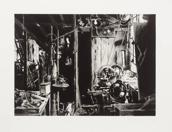 Curator: The visual density is startling. So much detail rendered in monochrome; it's almost overwhelming at first glance. Editor: This is "Hospital Ward," an ink drawing by Richard Artschwager from 1968. The piece is currently held in the collection of the Detroit Institute of Arts. For a drawing, it's incredibly ambitious in scale, especially considering the subject matter. Curator: Scale absolutely matters here. Think about how hospital spaces work—rows and rows, all those beds implying so much shared, yet solitary, experience. Then that gray tonality amplifying a feeling of stark, institutional isolation. There's a certain dread evoked, a kind of enforced sameness. Editor: Indeed. Artschwager’s use of ink aligns with a moment when artists critically engaged with social institutions and realism. He captured a scene and turned it into a narrative commentary, reflecting perhaps, a societal view of care in a particular moment in time. Do you think the realism speaks to anxieties present then? Curator: Undoubtedly. The way he’s composed the space, almost hyper-real and almost theatrical. Look at the placement of each bed and figure, almost as actors upon a stage. Are we invited to have empathy for those visible? Or are we invited to consider how as a society we respond to themes of collective fragility? What about that tension and sense of psychological unease? Editor: He prompts us to examine the social systems in place to address societal vulnerability and the shared experience of these patients. How does Artschwager avoid sentimentality when depicting what is intrinsically a place of suffering? Curator: It may stem from that monochrome choice. There is a distance. And while those symbols are evident here—beds, clothing, figures—what’s underneath, the emotional, is partially veiled. What can we know about their thoughts and individual humanity? What choices is the artist consciously making about representation? It's up to the viewer to supply meaning. Editor: Which also echoes a central question that conceptual art was wrestling with at that moment. Very well. I feel this prompts an introspective moment on the viewer's part. It's a piece that encourages you to consider mortality and social responsibilities beyond a direct emotional appeal. Curator: Precisely, challenging the traditional role art has and can have.