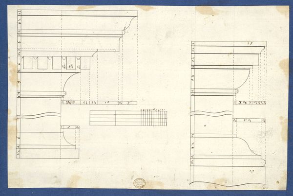 Editor: This is a drawing from 1753 by Thomas Chippendale, titled "Moldings for Library Bookcase." It's a print on paper, showcasing different architectural moldings. It's fascinating to see such a technical drawing presented as a work of art. What can you tell us about the historical context and social implications of such drawings being displayed in a museum setting? Curator: Well, the presence of a drawing like this in a museum tells us a lot about how we value and understand craftsmanship and design. In the 18th century, pattern books like Chippendale's were incredibly influential in shaping the tastes of the rising middle class. Displaying it now, framed and preserved, elevates it from a utilitarian blueprint to a cultural artifact. It asks us to consider the politics of taste - who got to decide what was stylish, and how were these ideas disseminated? Does the mass production potential suggested by these designs impact how we perceive it? Editor: So it's not just about the aesthetic value of the drawing itself, but the socio-economic factors surrounding its creation and reception? Curator: Exactly. Consider how the availability of printed designs impacted local craft traditions. Did it democratize design, allowing more people to access fashionable styles? Or did it standardize production, potentially marginalizing regional variations and skills? Also, the Metropolitan Museum's acquisition and display of this piece reflect its own history of shaping taste and defining what constitutes "high" art. It invites critical inquiry on whose narratives and cultural productions we deem worth preserving and showcasing. Editor: I never considered the social implications of a bookcase design before. It sounds like this drawing embodies a lot of the power dynamics of the 18th century and the enduring influence of institutions in shaping our aesthetic values. Curator: Indeed. Reflecting on pieces like this one enables us to trace how objects are entangled with political and social currents. It changes how we perceive our domestic space, realizing it as a convergence of history and cultural preference. Editor: It’s really eye-opening to think about design in this way. I'll definitely look at furniture differently from now on!