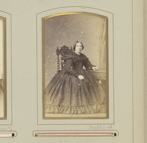 Editor: This is a multi-image albumen print, titled "Berthe", created in 1862 by André-Adolphe-Eugène Disdéri. It’s currently held at the Metropolitan Museum of Art. What strikes me is how it shows a single subject in what looks like a sequence, almost like a very early attempt at animation. How do you interpret this work? Curator: Well, look at the figure positioned next to statuary. This doubling speaks to how photography, particularly portraiture, wrestled with its own status as art versus mere record. Do you see how the subject’s poses mirror, in a sense, those classical sculptures meant to embody timeless ideals of beauty and virtue? Editor: I hadn't thought of it that way. So, the photograph is not just documenting Berthe, but also placing her within a certain cultural framework? Curator: Precisely! And consider the multiple images. This points to photography’s burgeoning industrialization. Disdéri patented this very process to produce multiple prints quickly and cheaply – cartes de visite. Each pose, while seemingly candid, is carefully constructed to convey a particular message, often reinforcing social norms and aspirations. These repeating images function as symbols of reproduction, circulation, and the commodification of identity in the 19th century. What is the lady's dark dress telling us? Editor: I'm not sure. Does it suggest modesty or formality? Curator: Perhaps both. Black dye, notably expensive then, was worn to signal social standing and sobriety. Every visual element is deliberate and rich with possible meanings. Editor: I see. So, it's about looking beyond the surface and understanding the symbolic language of the image. I never thought about how many messages could be packed into one photograph! Curator: Indeed! The power of images lies in their ability to compress and convey so much cultural and psychological weight through relatively simple forms. The daguerreotype truly marked an interesting stage of development for fashion and art.