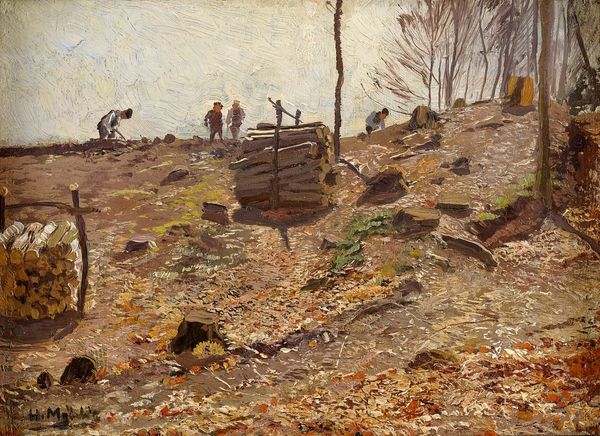 Ernest Lawson's "Road down the Palisades" presents a landscape rendered through a dense layering of paint, a surface alive with texture and color. The composition is structured by the road itself, a diagonal thrust leading the eye into the pictorial space, flanked by the rough, earthy tones of the hillside. Lawson’s technique—applying paint in thick, broken strokes—disrupts traditional representation, creating a visual field where color and form merge. This approach aligns with modernist concerns about the materiality of painting and its autonomy from illusionism. The road, a pathway through the landscape, is also a pathway into the very substance of paint. Lawson destabilizes the conventional landscape by emphasizing its constructed nature. The painting becomes an object, a site of visual and tactile experience rather than a window onto the world. Through this emphasis on materiality and structure, Lawson invites us to reconsider our relationship to both art and nature.