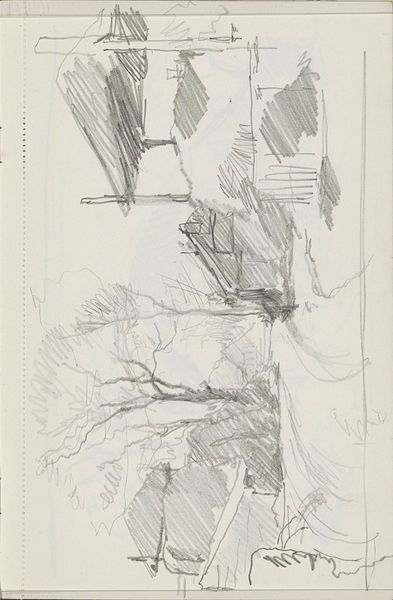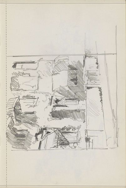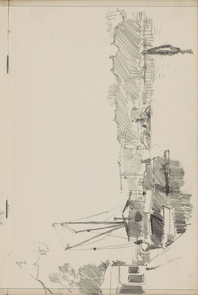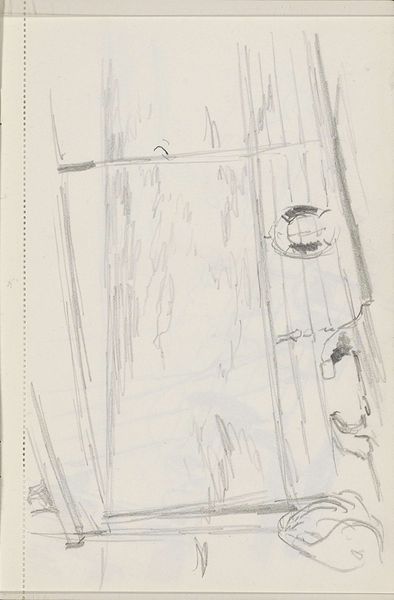 Curator: Looking at this piece, I am struck by a sense of the skeletal. A mast on paper rendered by minimal pencil strokes. Editor: Indeed, this is "Mast van een zeilschip" – "Mast of a Sailing Ship" – created around 1936 by Cornelis Vreedenburgh. It's a pencil drawing on paper, currently residing here at the Rijksmuseum. It seems a deceptively simple work at first glance. Curator: Simple perhaps, but not without a certain resonance. The ladder leading upwards speaks of aspiration, ambition. Though sketched, these upward lines have such depth of implied symbolic navigation in both worldly pursuits and our spiritual selves. It feels industrial yet intimate at the same time. Editor: Vreedenburgh's positioning within the art world of his time certainly leaned towards a realist mode, yet there’s a palpable tension. In this period, the Netherlands witnessed considerable social change – a tension embodied by this sketch where the functional coexists with this understated beauty. It is more of an expressive space than it first seems. Curator: Exactly. Look at the rigging depicted – the chains suggest burdens, responsibilities that one carries into these climbs in search of personal satisfaction and professional achievement. And those shadows... almost oppressive against the stark whiteness. They hint at darker narratives around industrial expansion. The relationship to maritime identity, with these pencil shadows offering new meaning. Editor: I’m also reminded of the strong maritime history that pervaded Dutch culture – ships were not just vessels for trade but represented freedom and exploration, an idea very culturally connected for many Netherlanders. Yet the drawing style – quite bare, quite functional – arguably complicates that romantic notion. This perhaps reflects on an awareness of maritime history evolving as technologies rapidly advanced through global trade networks. Curator: The light pencil work beautifully reflects what can be known about memory, fleeting or stable, by the use of this quick impression. Perhaps that tension is held within the idea that it feels both distant and recent. Editor: A poignant point. It makes one wonder if this drawing can serve as a wider comment, one considering not just maritime navigation but the navigations of socio-political seas that continue to ripple across generations. Curator: Ultimately, it encourages reflection on how objects, sketched through visual impressions, carry social echoes that transcend their material form, telling stories about an era through symbol and structure. Editor: Absolutely, and as such this offers more insight than simple appearances allow.