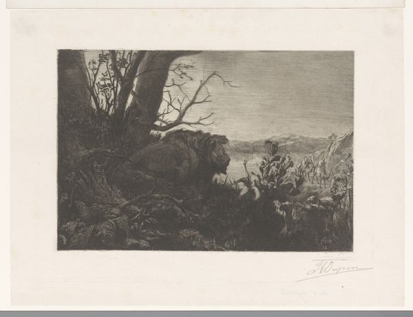 Alphonse Legros made this etching called 'The Lumberjacks, second plate’ sometime in the late 19th century. It depicts a group of men hard at work in a forest. Legros was a French-born artist who later taught at the Slade School of Fine Art in London. He spent much of his career moving between France and England, between the academic art world and the rising fashion for ‘art for art’s sake.’ The image is a study in labor, showing the physical strain of the lumberjacks. This was a period of increasing industrialization, and artists were beginning to explore the lives of working-class people. In France, the Barbizon School was painting rural landscapes and peasants. In England, there was a growing interest in social realism. Legros’s print participates in that cultural moment, depicting a scene of manual labor. To understand the image more deeply, we might look into the history of forestry and labor practices in both France and England during the late 19th century. What does the image tell us about changing attitudes toward the working class?