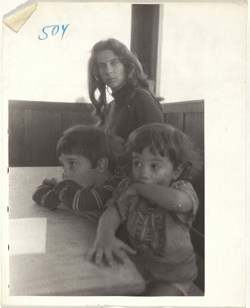 Robert Frank's photograph captures Mary, Pablo, and Andrea in Los Angeles, immortalizing an intimate domestic scene. The children's positioning on the bed evokes classical compositions of the Madonna and Child, or even the Holy Family, echoing themes of protection, innocence, and familial bonds. The gaze of the child to the left—Mary—directly confronts the viewer, a gesture that transcends time. We see it mirrored in ancient Roman portraiture, where the subject’s direct gaze was a sign of power. In medieval religious paintings, it invites the viewer into a spiritual dialogue. The soft focus lends a dreamlike quality, a subconscious connection to universal themes. It is in this cyclical resurgence of symbols that the image becomes timeless, engaging viewers on a deeply emotional, almost primal level. Frank invites us to explore the subconscious echoes resonating within this scene of domesticity, drawing on the ever-evolving visual vocabulary of human experience.