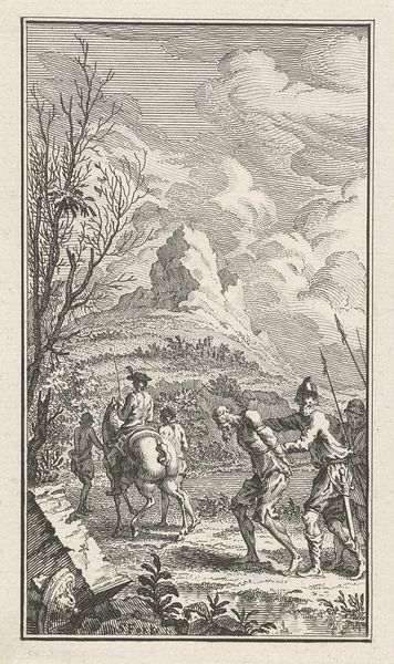 Abraham Vinkeles created this print, "Fights between French and Cossacks near Deventer, 1813," in 1813. It captures a skirmish during the final stages of the Napoleonic Wars. Here, we see Cossack soldiers clashing with French forces near Deventer, a Dutch city on the banks of the river IJssel. The image creates meaning through the visual codes of conflict. There are men on horseback, and the smoke of battle rises in the background, symbolizing the end of French occupation and the shifting political landscape of the Netherlands. The city's church tower looms behind the battle. The print speaks to the cultural memory of conflict and liberation during this period, and the hope for a return to peace and stability. Historical archives, military records, and local histories can shed light on the specific events depicted here. Understanding the social and political context allows us to appreciate how art reflects and shapes collective memory.
