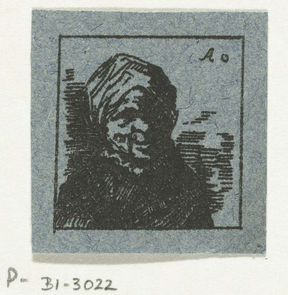 Anthonie van den Bos made this tiny woodcut of a laughing peasant woman sometime before his death in 1838. The image is printed in black ink on a small square of paper. Woodcut is an old printing technique, where the artist carves an image into a block of wood. The raised areas take ink, while the carved-away areas remain blank. This method leaves a distinctive, textural impression; you can see the marks of the cutting tool in the final print. Given its modest size and subject matter, this print was likely intended for a broad audience. It reflects a growing interest in the lives of ordinary people during the late 18th and early 19th centuries. The labor of the field is not directly represented, but the artist is careful to observe the woman’s clothing and expression, making her a symbol of rural life and the dignity of work. By appreciating the materials and making of this artwork, we recognize how prints like this contributed to a wider visual culture, blurring the boundaries between art and everyday life.