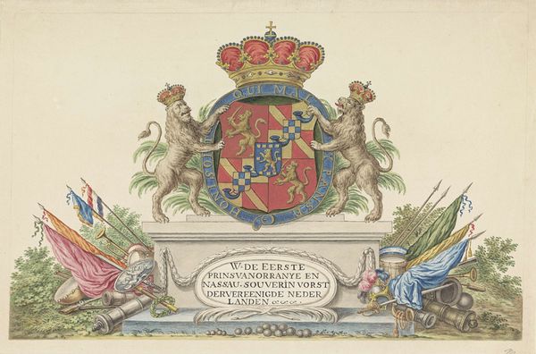 Franz Ziegler created this print to commemorate Queen Wilhelmina of the Netherlands’ fortieth year on the throne. Wilhelmina became queen at the tender age of ten, and her reign coincided with pivotal moments in Dutch history, from World War I through the interwar period, and into the beginning of World War II. The print uses a triptych format to depict the queen in three distinct poses. The queen is flanked by images of her son-in-law and daughter, Prince Bernhard and Princess Juliana. Symbols of monarchy and nationhood, like the Dutch coat of arms, crowns, and royal regalia, are placed throughout. What does it mean to depict leadership as a dynastic affair? What does it mean to consolidate it in a female body? Ziegler’s print blends national pride with intimate family portraits, inviting us to consider the emotional weight of monarchy. Even as Wilhelmina navigated political turmoil, she remained a symbol of stability. In times of upheaval, how does a leader balance public duty and private emotion?