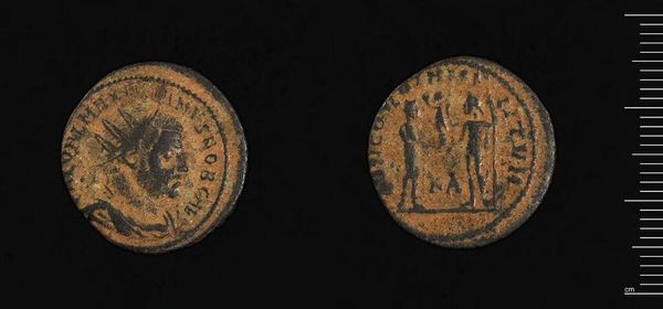 Editor: This is an Antoninianus of Maximian, crafted in Cyzicus, a coin now held at the Harvard Art Museums. It feels incredibly weighty, not just in material but in its historical presence. What can you tell me about its significance? Curator: Well, these coins weren't simply currency. They were tools of imperial propaganda. Consider where they were circulated, their availability, and the message they conveyed through imagery and inscription. How did this affect perceptions of power? Editor: So, it's not just about the coin's value, but what it communicated? Curator: Exactly! The very act of distribution was a political statement, shaping the public's understanding and acceptance of Maximian's rule. Food for thought, isn't it? Editor: Definitely changes how I see it! Thanks!