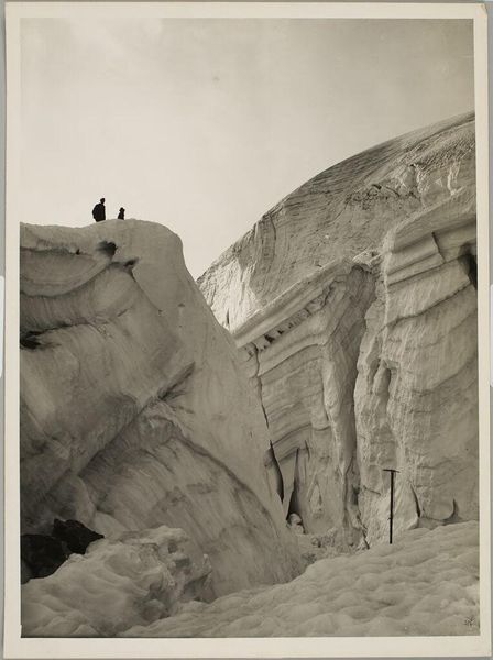 Curator: Timothy O'Sullivan's photograph, "Ancient Ruins in the Cañon de Chelle," captures cliff dwellings in New Mexico. Editor: Stark and monumental! The way the light rakes across the canyon walls gives the stone this incredible, striated texture. It feels both ancient and immediate. Curator: O'Sullivan, working in the late 19th century, was often tasked with documenting the American West, contributing significantly to perceptions of its landscapes and the people who lived there. Editor: And what symbols resonate! The ruins speak of resilience, while the towering rock suggests the power of nature, almost a protective, maternal embrace. Curator: Indeed. Its documentary style also held a certain authority, shaping public opinion and government policies regarding Native American territories. Editor: Right. But the image transcends mere documentation. It whispers of lives lived, histories etched in stone. It’s a reminder of time's relentless march. Curator: It's certainly a photograph layered with social and aesthetic weight, prompting us to consider whose stories are being told and how. Editor: Precisely. It lingers in the mind long after viewing, doesn't it? A powerful testament to the enduring human spirit set against the grandeur of the earth.