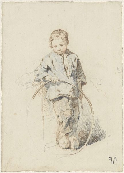 Eugène-Ernest Hillemacher sketched this young boy, in France, using graphite, possibly in 1852. Looking at this image, we see how clothing and pose were used to construct identity in 19th-century France. The boy's dress and stance hint at a narrative. Is he playing dress-up, or is this how young boys from affluent families were typically attired? Hillemacher’s skillful use of line and shading brings the boy to life, but it also frames him within specific social codes. The loose sketch style may suggest informality, but it also reflects the academic artistic practices of the time, where studies of figures were crucial. To fully understand this sketch, we need to delve into the fashion of the era, and perhaps consult family portraits, or even conduct literary research. What stories do such images tell about childhood, class, and aspiration? The meaning of art is always contingent on social and institutional context.