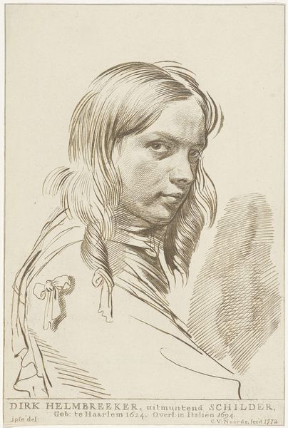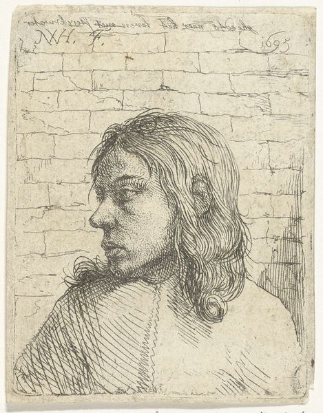 Curator: Here we have a pencil drawing on paper, titled "Junglingskopf mit langem Haar" which translates to "Youthful Head with Long Hair," by Carl Barth. The piece currently resides in the Stadel Museum's collection. Editor: Ah, I am immediately struck by its serenity. The softness of the pencil work gives it an almost ethereal quality, a delicate observation, almost reverential. The subject's gaze is inward, reflective. There is a calm resignation or melancholia present. Curator: Precisely. I'm drawn to the meticulous layering of the pencil strokes to create volume and shadow, paying specific attention to the cultural associations and status associated with access to high-quality drawing materials, such as pencils and paper. Who would have the economic means to procure these materials for art production, especially considering the emphasis on capturing such a delicate likeness? Editor: Yes, this portrait almost exists suspended in time and space, focusing the attention on the humanity present in this young subject rather than the materials at hand, although now that you point them out, the deliberate choice of paper colour certainly complements that subdued and reflective mood I picked up on initially. The quality of light seems essential to the viewing experience and to understanding its overall effect on my senses, which makes it an inviting work that asks the viewer to come in for a closer inspection. Curator: The labor involved in creating such detail, using only pencil on paper is impressive in its commitment. The absence of vibrant color emphasizes the formal elements - line, tone, texture. The choice of material amplifies the inherent connection between production, distribution, and historical relevance as well. Editor: And somehow, in all that labor, there is still an intimate quality. It feels immediate. Perhaps a glimpse into a private moment captured by the artist and shared for generations, if not centuries, to come. Curator: Looking at the role that portraits play in constructing identity is something I hadn't fully considered, and I appreciate your intuitive perspective. Editor: And I hadn’t considered that the very materiality of art can dictate cultural norms! Thank you for these enlightening perspectives.