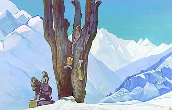 Nicholas Roerich painted ‘And we are not afraid’ with oil on canvas, but when is anyone’s guess. The painting is made using a very distinctive palette of blues, pinks, and purples, and a flattened perspective. It’s so simple it’s childlike but it has a sophisticated sense of colour. The surface of the painting is smooth, creating a dreamy and almost surreal atmosphere. Look closely at the way Roerich painted the mountains in the background, which he rendered in soft, muted tones. The overall effect is one of tranquility and harmony. The figures, on the other hand, appear as solid black shapes. This contrast makes the viewer think about the relationship between humans and nature. Roerich's interest in spiritual and mystical themes is evident throughout his oeuvre. He invites us to contemplate the mysteries of the universe and our place within it, but he also reminds me a little of Milton Avery, which, to me, shows how modern painting can be found in very strange places. It’s all connected, you see?