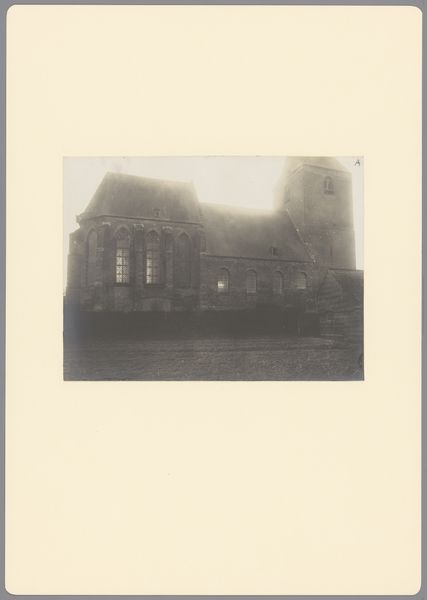 This photograph, made by an anonymous artist from Monumentenzorg, captures a section of the Grote or Sint-Nicolaaskerk in Elburg. It’s like a ghost, isn't it? The whole image is swathed in this sepia tone that feels both old and kind of dreamy, a bit like an Instagram filter but, you know, the real deal. Look at how the light sort of dissolves the edges of the building into its surroundings, blurring the line between what’s solid and what’s just atmosphere. The texture is grainy, giving it a tactile quality, as if you could feel the age in the photograph itself. I keep coming back to that little arched window; the way the light catches it makes it seem like a portal, hinting at the mysteries hidden within the church. The way the artist chose to frame this section of the church gives it such a contemporary feel. It’s like Bernd and Hilla Becher decided to travel back in time! This piece reminds us that art is an ongoing conversation. It's not just about perfect representation, but about how we see and feel the world around us.