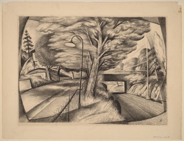 Curator: Oh, there's something so melancholic about this! It feels like a stage set for a forgotten drama. Editor: Exactly! This is "Bench in the Woods II," an etching by Lovis Corinth. Curator: An etching; that explains the almost frantic energy in the lines. It's like he's trying to capture something fleeting, the way light filters through the trees. But what is the bench itself meant to represent? Editor: Think of the bench as a site of exclusion. Who is allowed to rest, to contemplate? Is this space accessible to all? Corinth lived through a period of immense social upheaval. Curator: I see your point. It's easy to get lost in the pretty, dappled light and forget the bench is also a very tangible reminder of boundaries, both seen and unseen. Editor: And that tension, that duality, is what makes the piece so compelling. It is a prompt for a deeper questioning. Curator: Absolutely. It’s a reminder that even the most tranquil scenes can hold layers of social meaning, waiting to be discovered.