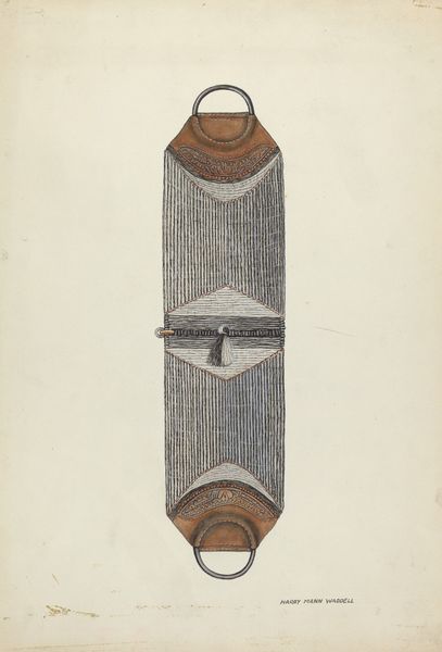 This is Frank Volem’s "Lead Miner's Screen", made in 1894 using watercolor and graphite on paper. The screen dominates the composition, suspended against the paper's pale ground. Its circular form is built from two wooden rings holding a grid of woven metal. Volem’s attention to materiality is striking. The wood grain and subtle tonal variations of the metal create a play of light and shadow. Each square of the grid acts as a miniature frame, drawing the eye into an intricate dance of lines. Yet, this focus on the quotidian elevates the object beyond its functional purpose. The screen's ordered structure invites us to consider the relationship between the individual and the collective. The grid symbolizes the human need to organize and control the natural world. Ultimately, Volem transforms an ordinary tool into a compelling meditation on structure and form. This demonstrates how art can challenge our perception of the everyday.