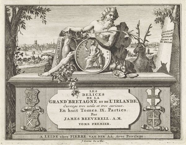 Editor: So, here we have "Vissersboten op het water," or "Fishing Boats on the Water," by Albert Flamen, created sometime between 1648 and 1670. It’s an engraving, so ink on paper. I’m immediately struck by how incredibly detailed it is for such a small-scale print. All those tiny lines create a real sense of depth, but it's also quite formal with the dedication. What do you see in this piece? Curator: This print is more than just a scene; it's a vessel carrying cultural and personal meaning. Look at the prominent cartouche and heraldic shield; those were status symbols, visual claims to lineage, authority, and the right to the water itself, claiming that authority over diverse species of fish, both of sea and freshwater. Consider the ribbon cartouche across the top – it presents dedications as proclamations. How does the dedication contribute to the image's overall message about the fishing industry? Editor: It seems to be about showing respect for the Marquis, the baron and his authority, perhaps suggesting his influence over the fishing trade? Curator: Precisely. The symbolism is deeply rooted in societal structures of the period. Flamen isn't merely depicting boats; he is constructing an image that reflects and reinforces a very specific power dynamic and maybe even the very first concept of branding through identity and logo for the families, but that’s speculation. The placement of the boats feels almost secondary. Does that change how you perceive the relationship between the figures in the boats and the overall message? Editor: It does. Knowing that, it makes me consider who the artwork was intended for. I now see how carefully Flamen chose his imagery to create an impression. I appreciate seeing this through a new perspective. Curator: And that's the fascinating aspect of these older works; they were intentionally crafted to preserve symbolic language and legacy.