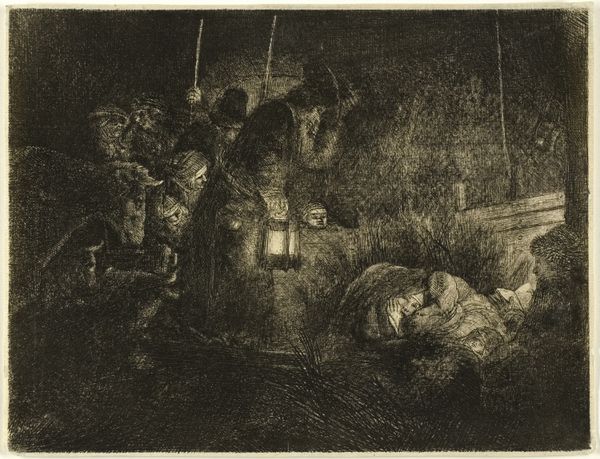 Rembrandt van Rijn's etching, *The Descent from the Cross by Torchlight,* presents a scene of profound grief, illuminated by flickering torchlight. The body of Christ, draped in a shroud, is carefully lowered, an image echoing the ancient motif of the deposition, yet charged with a new, raw emotionality. The descending Christ, this figure, appears in countless forms across time. Consider the ancient mystery cults, where the dying god was a symbol of renewal. In Rembrandt’s hands, the deposition transcends mere religious narrative; it becomes a universal expression of loss. Notice how his limpness recalls earlier works, where his body is portrayed as idealized and triumphant. The image conveys intense emotion on a subconscious level. The stark contrast between light and shadow evokes a psychological space where grief and mourning intertwine. This is no mere historical depiction, but a moment where collective memory and personal anguish converge. The recurring motif, an emblem of human suffering and the hope for redemption, resurfaces through history, evolving, transforming, yet retaining its potent emotional core.
