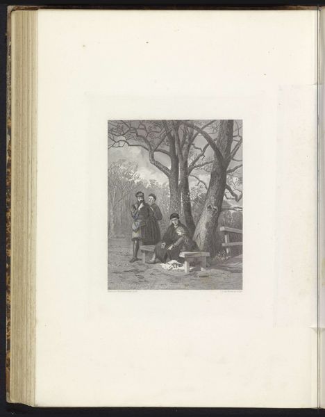 Christiaan Lodewijk van Kesteren created "Wolvenjacht" around the 6th century using an engraving technique. At first glance, the monochromatic palette emphasizes the stark contrast between light and shadow, creating a dramatic, almost theatrical scene. The composition is dynamic, with the hunt unfolding in a flurry of motion. Dogs and figures are caught in active poses, heightening the sense of chaos and energy. Note how van Kesteren uses line and form to convey texture, from the fur of the animals to the rough terrain. Van Kesteren masterfully orchestrates the visual elements to explore themes of nature and civilization. The wolf hunt becomes a potent symbol, with the image destabilizing established meanings. The engraving technique adds a layer of complexity. Finally, consider the interplay between the visual elements and the narrative. The dynamic composition serves not just as an aesthetic choice but also as a means of questioning power and representation.
