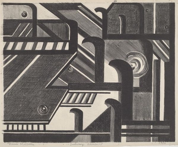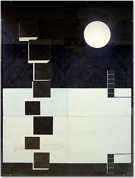 Editor: This is a photograph of Josef Albers' sandblasted glass paintings. The geometric composition is so intriguing. What's striking to me is the emphasis on process. How does the use of industrial techniques influence our understanding of this piece? Curator: Well, the sandblasting process itself collapses the distinction between high art and craft, doesn’t it? It moves away from traditional artistic skill, emphasizing instead labor and materiality in production. Editor: So, the artwork isn't just about the image, but also about how it was made and what that implies about art's relationship with industry? Curator: Precisely! It makes us consider the means of production as integral to the artwork’s meaning, reflecting on the social and economic context of its creation. Editor: I hadn’t thought about it that way. It's interesting to consider the artist's labor this way. Curator: Yes, it shifts our focus from the artist's hand to the industrial process, really challenging traditional notions of art.