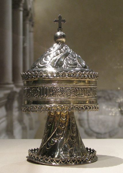 Editor: This is a silver Ewer, created sometime between 1845 and 1855 by François-Desiré Froment-Meurice. Its surface is covered in a mesmerizing geometric pattern. What historical currents do you see reflected in this piece? Curator: I see a deliberate reach back to Byzantine art, a period often romanticized for its perceived spiritual purity and imperial grandeur. Given its creation in the mid-19th century, what social and political forces might be at play in reviving such a style? Editor: Perhaps a desire to connect with a powerful historical legacy? A yearning for stability in a time of upheaval? Curator: Precisely! The Ewer emerges during a period of significant social and political change in France, marked by revolution and the rise of industrialization. Think about it - who would commission such an elaborate, handcrafted object? Editor: Probably someone from the upper class wanting to express wealth. Curator: Indeed. But it’s not just about wealth; it’s about the performance of status through a visual language rooted in idealized historical narratives. What does that say about anxieties around social mobility and the shifting distribution of power during this period? Editor: So, the ewer is more than just a decorative object. It embodies a complex dialogue between historical appropriation and contemporary social anxieties. Curator: Absolutely! By examining the convergence of style, material, and social context, we can understand the Ewer as a potent symbol of 19th-century French society, not just a pretty object. Editor: This gives me a lot to think about, recognizing historical context adds layers of meaning I wouldn't have considered before.