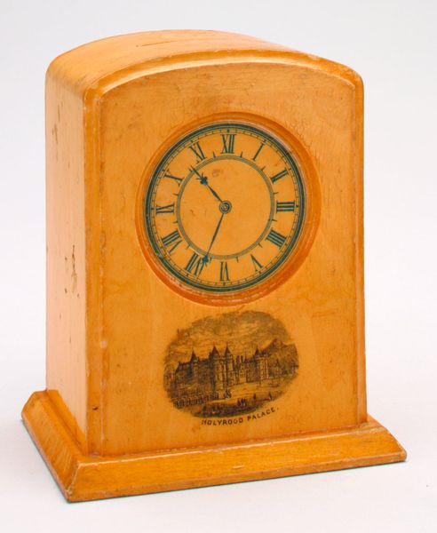 Curator: Looking at this quaint object, I feel immediately nostalgic, like I've stumbled upon something from a simpler time. It's that sort of endearing kitsch that pulls at your heartstrings. Editor: What we're looking at is the "-Fun-Producing Savings Bank-" mechanical bank, a piece hailing from around 1918. It’s attributed to the Silver-Mirror Company, Inc. a testament to early 20th-century material culture here in the United States. The materials are listed as mixed media, comprising of ceramic and metal elements. Curator: Its green coloring and circular dial reminded me of early scientific devices and turn-of-the-century aesthetics. I find it really intriguing that a bank is disguised as a playful sort of weight indicator, its form completely playing with ideas of health and wellness fads that proliferated then. Editor: Indeed, the color immediately makes one think of an almost medicalised environment – the bank operates, literally and figuratively, around notions of chance and fortune, class anxieties of the time. Did people buy into the symbolism? Curator: The inscription on the base says: "Guess Your Weight, Get Your Money Back!" I wonder if this reflects a collective aspiration for prosperity that became increasingly emphasized during times of great inequality and industrialization. And the visual grammar here, particularly its bolded size indication - ‘ONE CENT’ - is a not-so-subtle reminder about its costs to access even ephemeral feelings of control. Editor: The semiotics of the device, with its weighing scales, suggest control. However, by putting money into the equation, it becomes a spectacle. The scale isn't just about weight; it also serves to make very visible people's efforts at accruing something, financial stability and physical, and therefore socio-economic capital. Curator: It’s also fascinating how they use something like our inherent fascination with body image – its always there in the room with you - to promote savings in the shape of play! It makes the message behind this vintage object still timely even today, and an intersectional dialogue about cultural beauty ideals can continue for generations. Editor: It’s also very satisfying to connect to past notions of body-positive sentiments – in today’s language. Even as this seemingly basic novelty bank plays upon certain universal vanities and fears! Curator: Right, and by recontextualizing how we view it – the design choices, messaging - we have the potential to transform its very function – or at least offer us tools to reshape old beliefs!