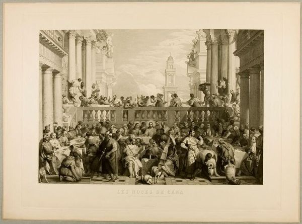 Editor: So, this is Guiseppe Mochetti's "School of Athens," housed here at the Harvard Art Museums. It feels so grand, almost overwhelming. What's your take on its significance? Curator: It invites a critical examination of who is represented in the pursuit of knowledge and who is excluded. Who gets to be a philosopher, a mathematician, a celebrated thinker? And whose voices are absent from this historical narrative? Editor: That's a powerful question. It makes you wonder about the silences within such a celebrated scene. Curator: Exactly. Consider the socio-political implications of representing knowledge through a specific, often exclusive, lens. Reflecting on how power operates in shaping our understanding of history is key. Editor: I see it now. It is not just an image, but a document that tells us as much about then as it does about now.
